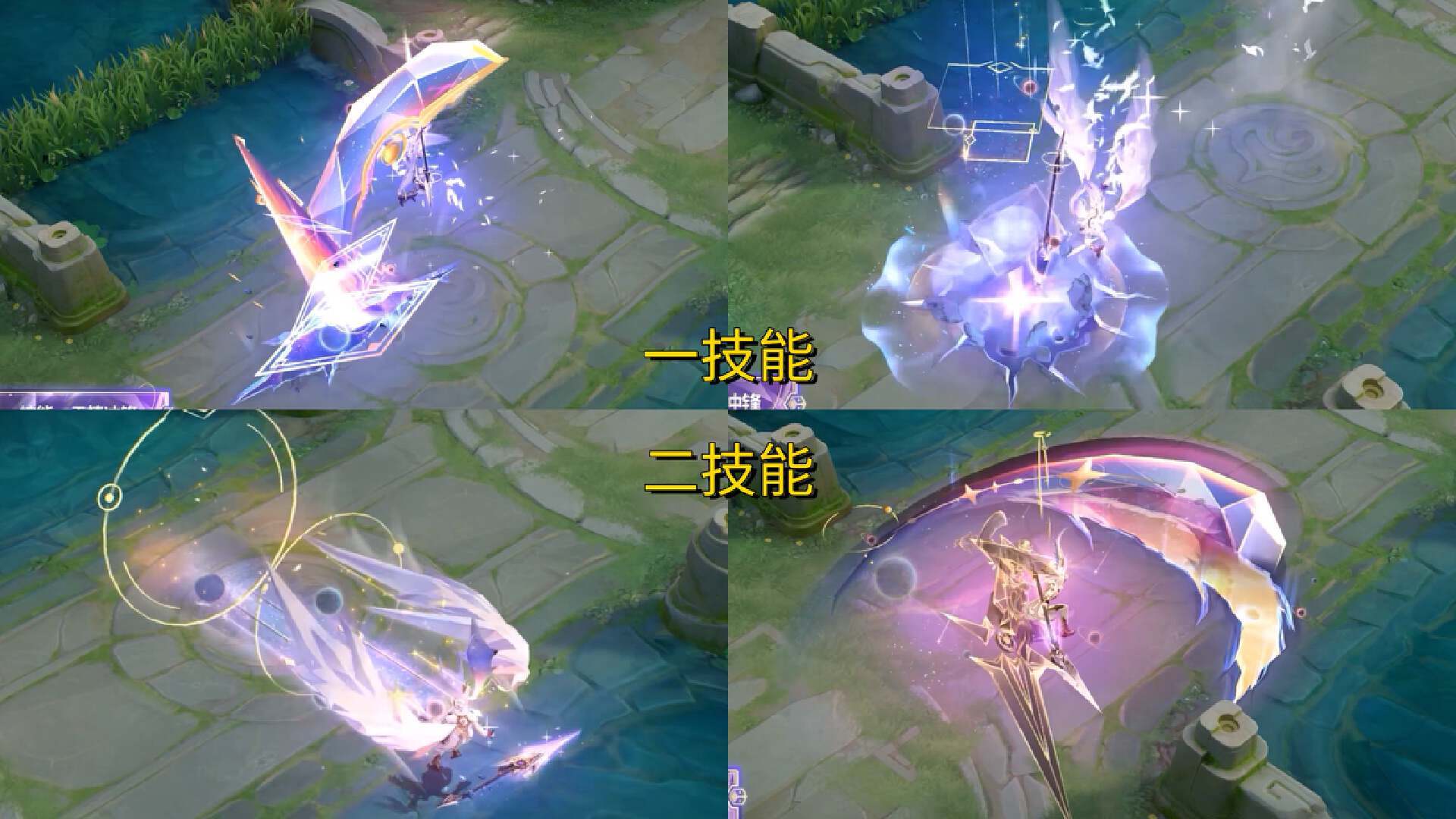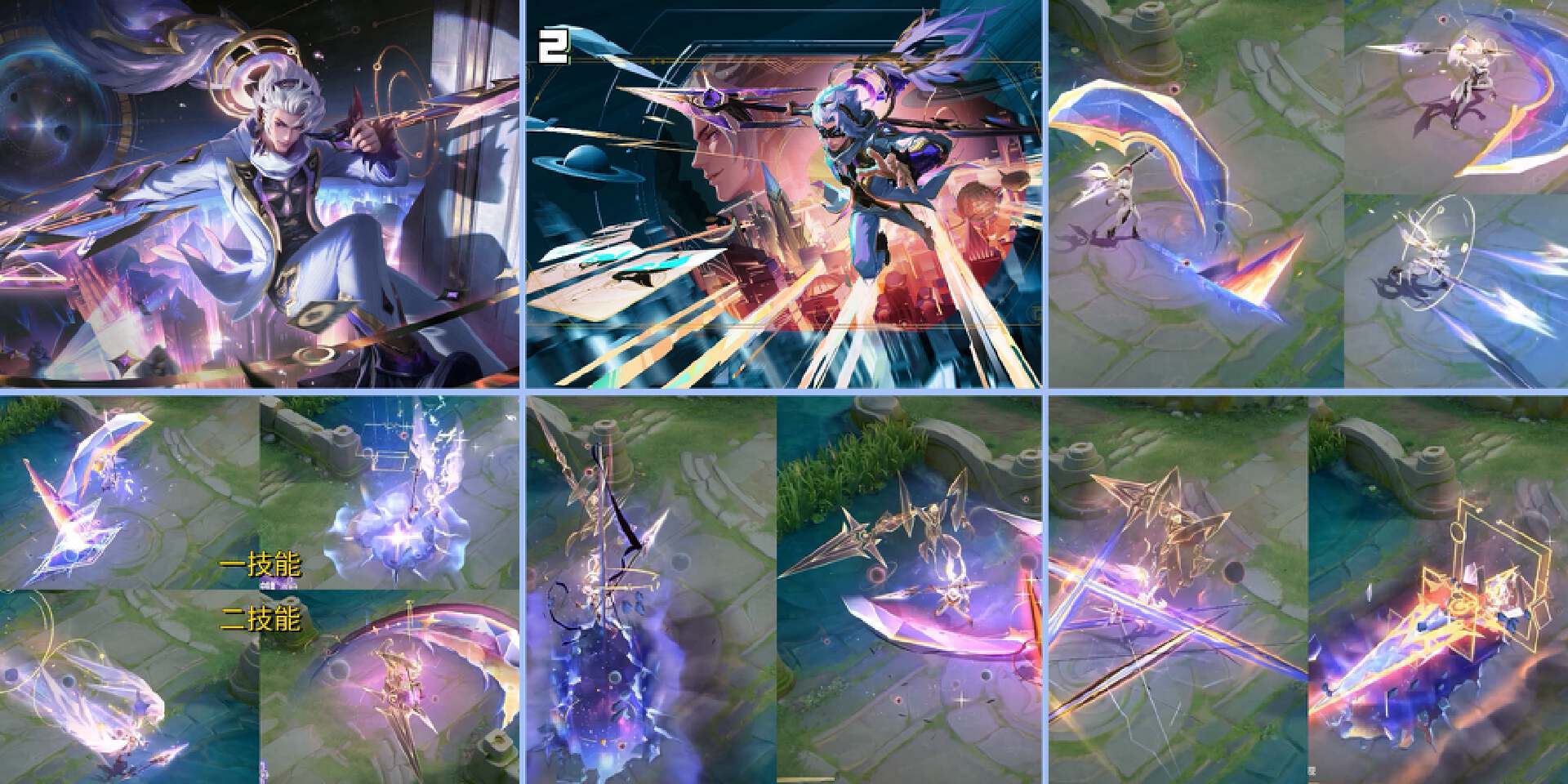 二技能的位移效果会展开白色的翅膀,后面还有星环围绕以及星球元素,强化普攻向前横扫,身后会召唤出魔术羽翼,就像开启武魂真身一样,特别帅气,依旧有很多星球元素。