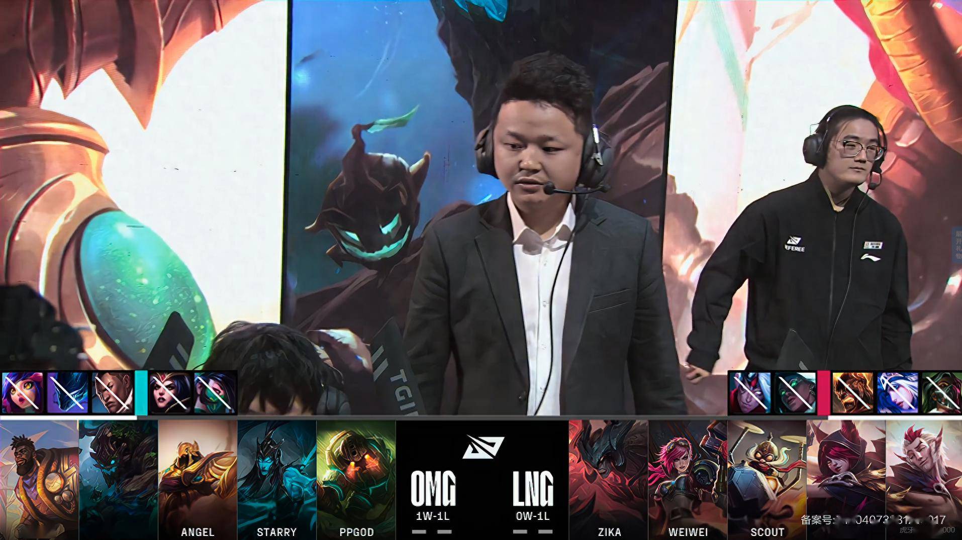 Weiwei的前期节奏完美,上路与下路的节奏带动的非常好。OMG虽然前期上下两路被Gank,但下路的EZ还是对位压制住LNG的下落,将镀层吃到满。面对LNG的没前排阵容,OMG前期机虽然劣势,但还是中后期有机会。