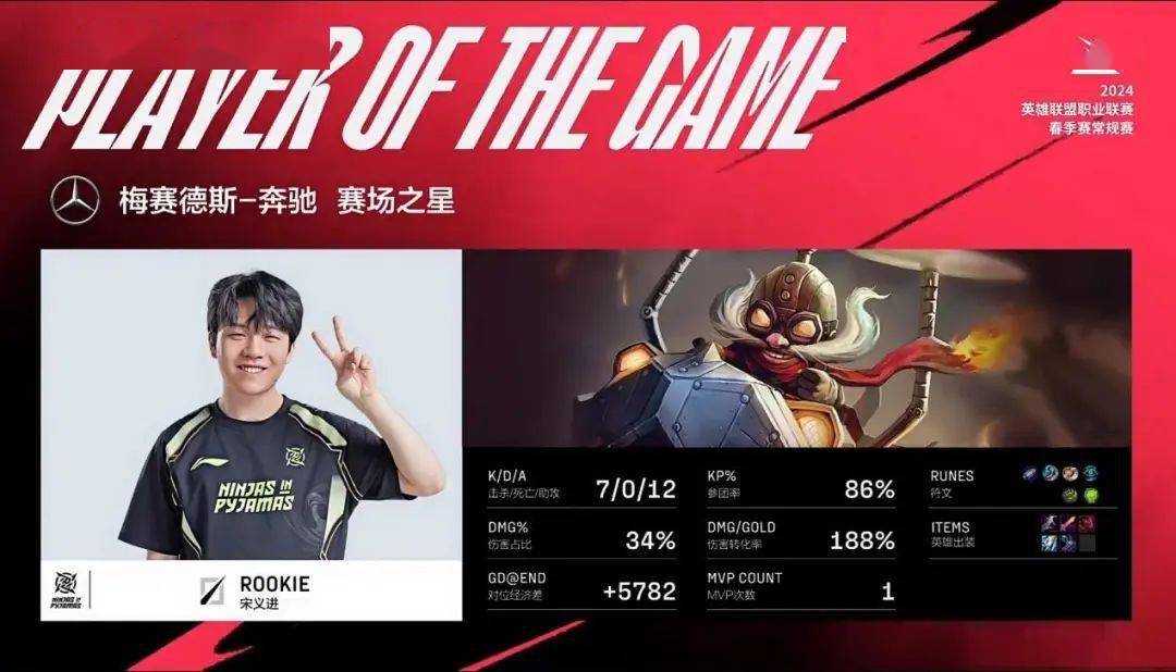 LPL职业联赛春季赛在昨天进行了一场黑马对决,开赛成功取胜的IG战队迎战NIP战队,Rookie再次对阵老东家,结果拿出了封神级别的表现成功击败对手。