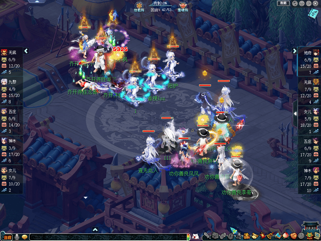 比赛前期,双方主要以加状态和清宠为主。不过,比赛第38回合时,【劝你善良】抓住机会,一波点掉【齐开得胜】五庄观,打破了其双封体系。