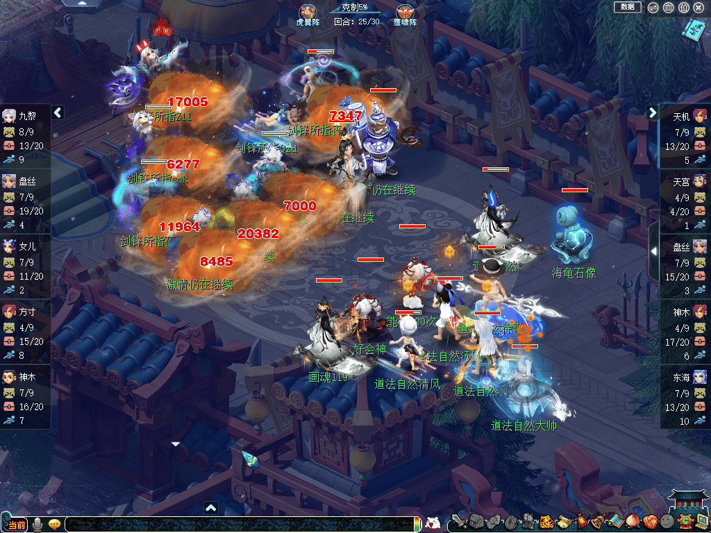 比赛前中期,双方主要以清宠和加状态为主。不过,比赛第25回合时,【道法自然】的东海渊凭借辅助神木给的增伤技能,秒出了一波非常爆炸的输出,瞬间打穿【剑锋所指】防线。这波输出过后,【道法自然】拉出瞬法须弥成功清场,拿下比赛胜利!