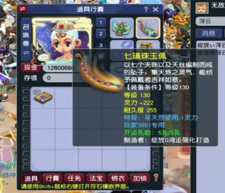 而最后一件更是传说中的“法系梦想”,一条初灵高达222的130级专用项链,比非专用极限还高出2点灵力!