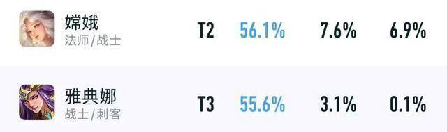 首先是嫦娥+雅典娜这两位“传奇耐改王”,不管策划怎么“变异”,她俩的巅峰赛胜率都很难跌破55%。