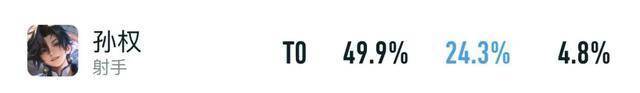在巅峰赛里,孙权有着24.3%出场率,排在发育路的榜首,同时胜率也有49.9%,对比以前足足涨了1%左右,说明伴生皮肤多出的10点Ad,真的很有用。