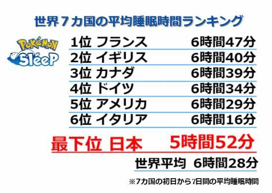 《宝可梦Sleep》各国睡眠时长调查:日本5.9小时垫底