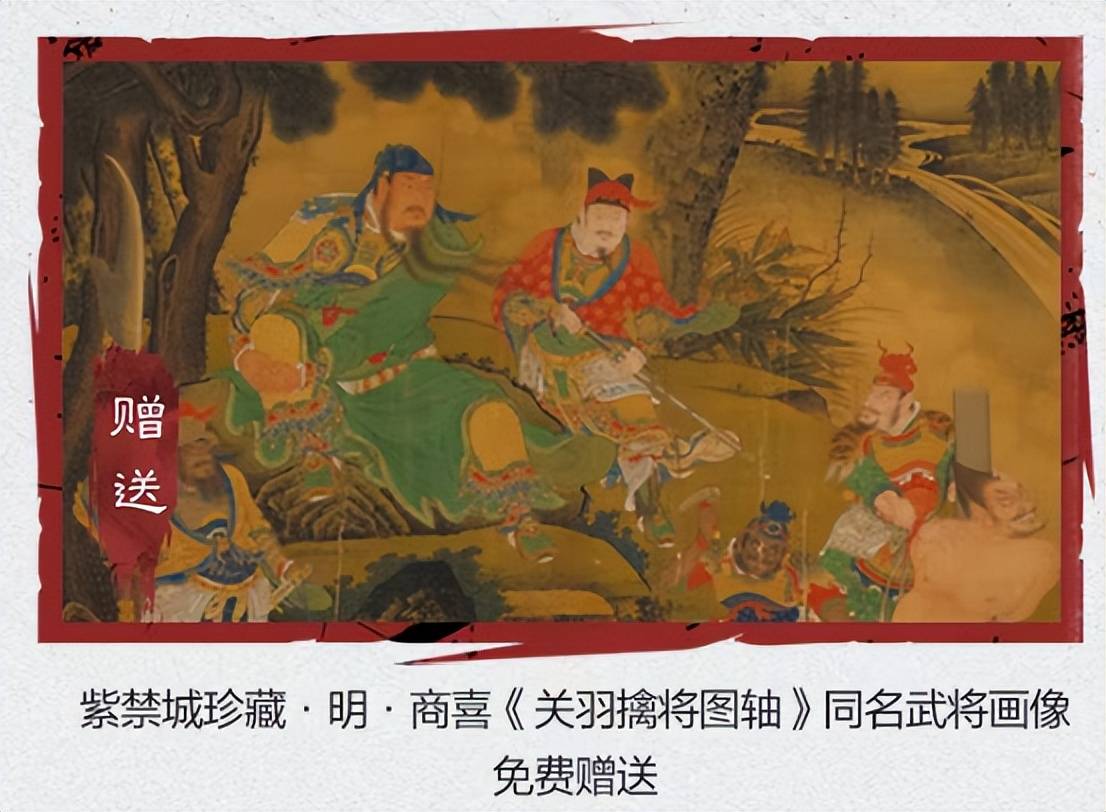 比如,东晋大画家顾恺之的《洛神赋图卷》,这可是中国美术史上的顶级名作,开创了中国传统绘画长卷的先河,现在,游戏免费送!还有明代商喜的《关羽擒将图轴》,画中威风凛凛的关羽形象,也将作为武将画像免费送。