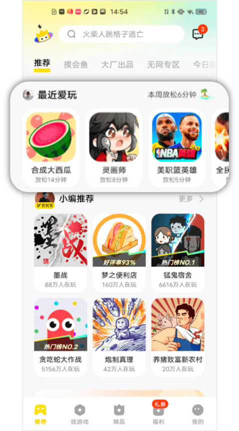 其中,核心的入口是小游戏中心的“最近爱玩”模块,其次留能达到42%,还能通过复访带动其他游戏的曝光;