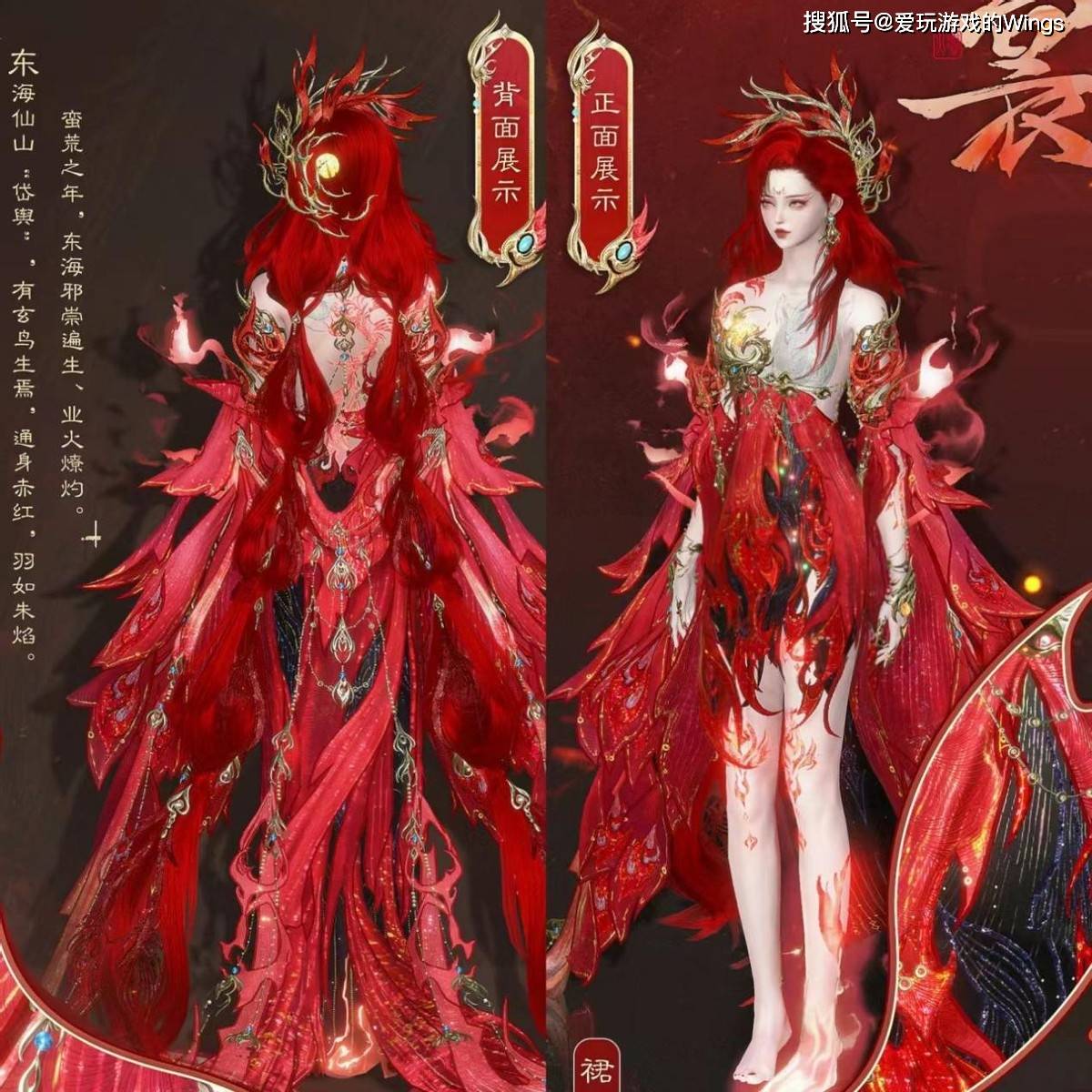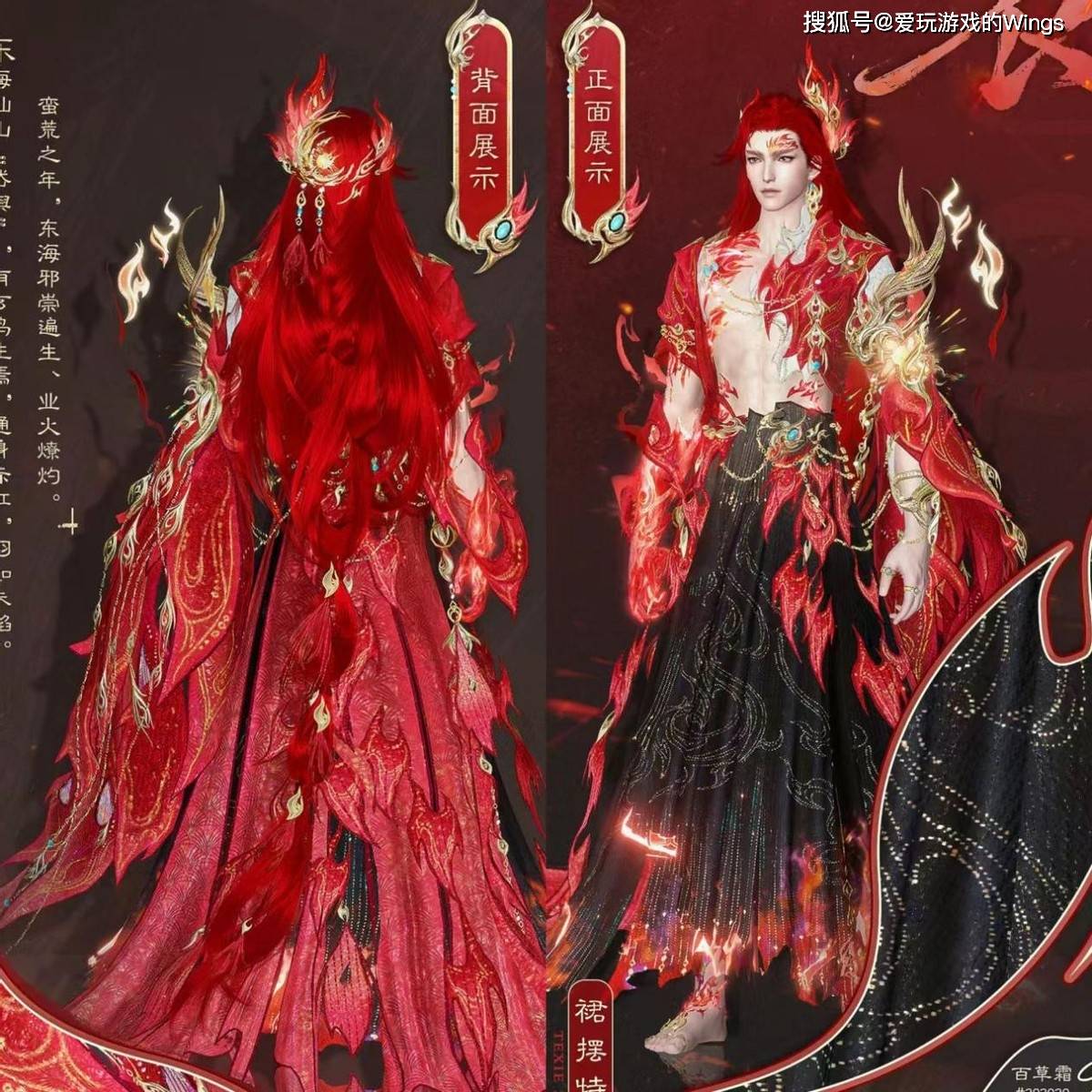 在女款时装【朱焰羽裳】的设计中,红火的燃烧形象被精巧的描绘出来,深红色的羽衣如同全身燃烧的火焰,给人极强的冲击感。同时,其羽翼与裙摆的融合,又打造出一种奔腾飞翔的意象。再看至那身上的真火之力,凭空幻化成的火焰花纹,宛如萤火虫般随风飘动,亮起又熄灭,仿佛有一种神秘的力量在保护之中。