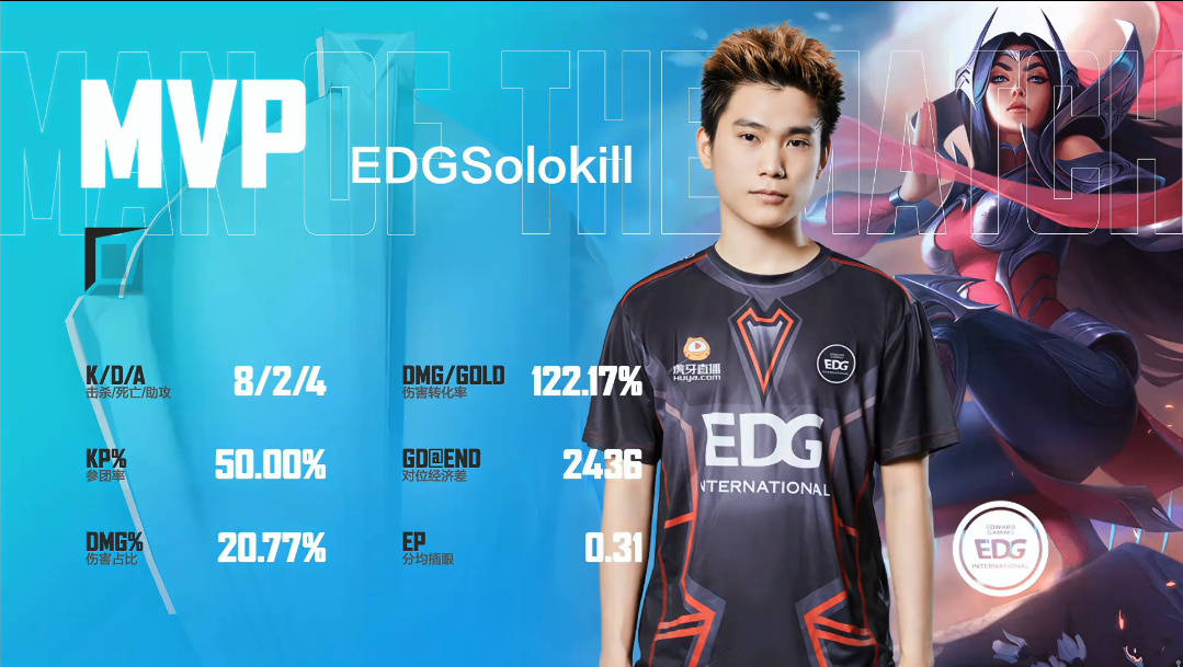 2024LPL春季赛1月30日,EDG战队在遭遇两连败后作出了大胆的调整,让新秀Solokill取代Ale成为首发上单,在对阵LGD的比赛中迎来Solokill的LPL首秀。