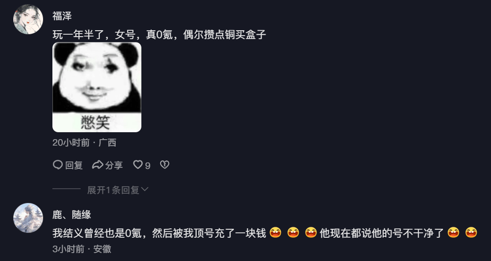 因此,当得知有人玩了两年多游戏,硬是一分钱没花,连首充记录还在,充值金额是清清白白明明确确的“0”的时候,还是有人忍不住惊讶。