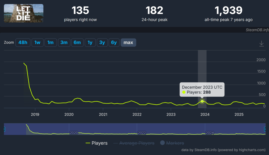即便是历史最高数据,《Let It Die》在Steam上的同时在线玩家峰值也不到2000人,再加上原本草蜢工作室的粉丝们不太待见免费网游,所以这款游戏通常不会被视作什么成功案例。