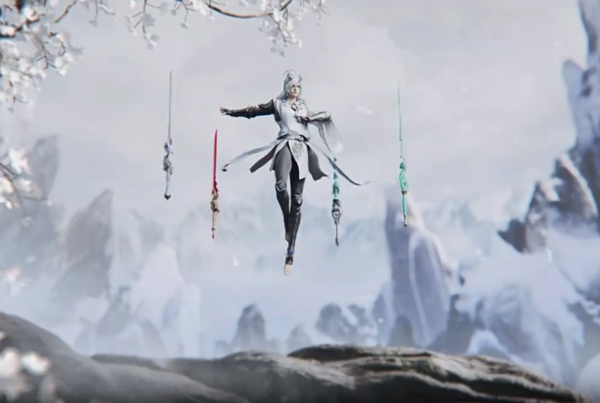 这里可以大胆预测下英雄的技能,4把佩剑环绕在他身旁,他的手势也是御剑的动作,武器的颜色不同,那么每一把武器的作用理应不同,这就好比狄仁杰的牌,不同的牌可以打出不同的效果。4把剑大概率是击退、回血、回能量之类的作用,具体要等官方来公布,这里只是猜测,结果差距应该不会太大。