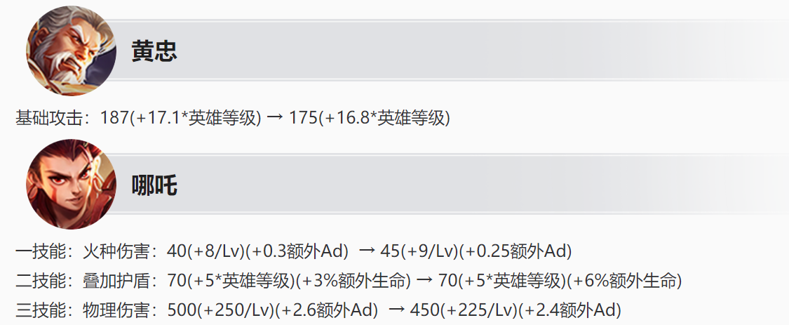 哪吒调整:1技能的火种伤害前期增加,2技能的叠加护盾增加,大招伤害降低。