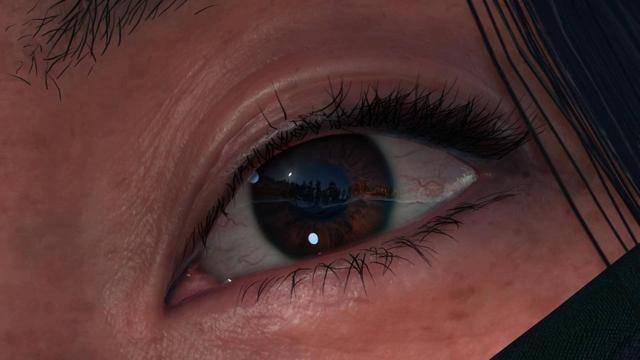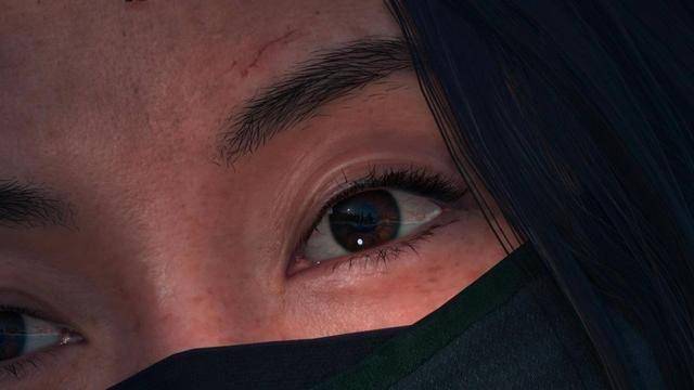 近日在推特上有许多人分享了《羊蹄山之魂》女主角笃的眼睛截图,放大后除了能看到眼球的血丝,还能看到即时反射周围山峦与天空的画面。经测试,需要在光线充足且亮度高的场景中,比如雪地、冰面场景之类的,瞳孔反射才能清楚看到。在草原之地则不太清楚或几乎没有。而这个微小却精致的细节,立刻在网上引起热议。