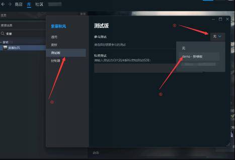 (4)在弹出的属性窗口中选择测试版;