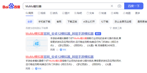 第一步:准备一个最新版的MuMu模拟器12,使用浏览器搜索【MuMu模拟器】就可以找到官网获取。