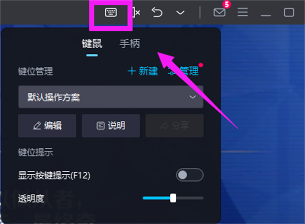 想要使用手柄操作的玩家,只需要提前将手柄连接到电脑上,开启游戏后,点击右上角的“小键盘”选择【手柄】即可。