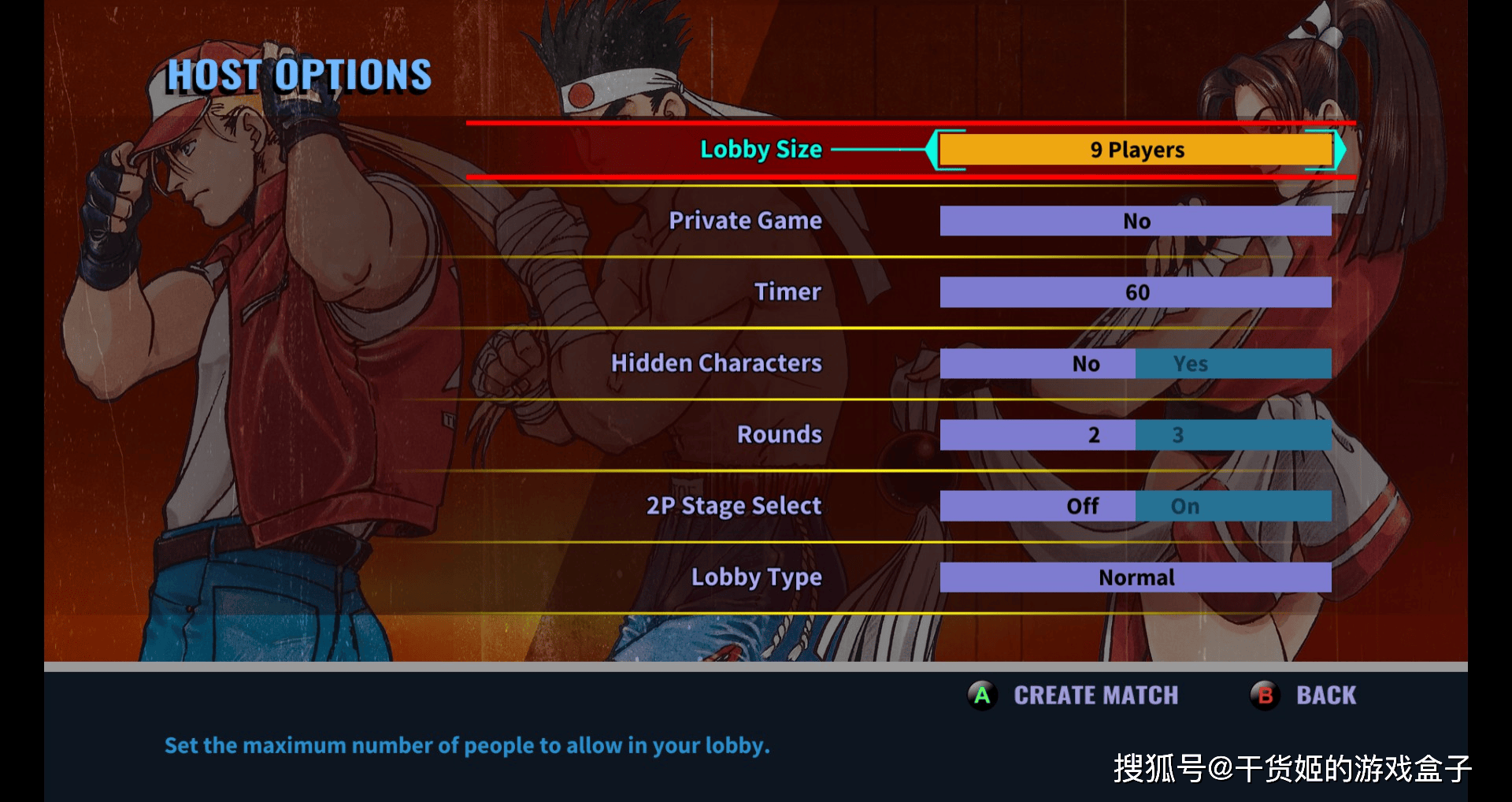 当然,作为一款新世代的移植游戏,SNK这次可以说是非常的良心,为游戏做了很多是适合于现代玩家需求的功能添加。其中最为核心的是优化了游戏的网络对战服务平台,为游戏加入了网络对战回滚代码,可以在很大程度上优化线上对战的流畅度。支持最大9人同房间竞技,玩家可以修改对战规则,例如回合数,单回合时间等。当然,游戏毕竟是一款老游戏的移植,再加上格斗游戏在线人数较少,如果想很快速的找到线上对战玩家还是需要等待一下的,建议还是加群约战会高效很多。