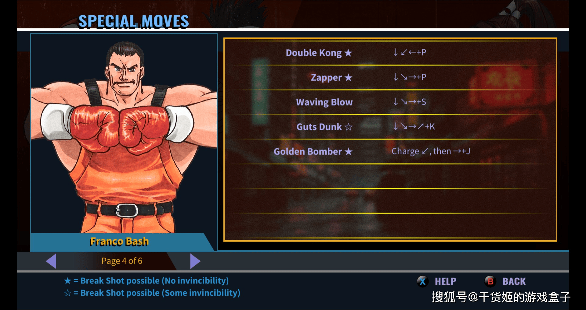 此外,SNK在训练模式中也是加入了全新的变速功能,以及显示碰撞打击方块的功能,从而帮助玩家更好的去研究对战的细节。玩家在训练模式中也可以设置陪练的动作方式,是防守还是进攻,通过这些功能,玩家在实战中应对对手攻击的方式也会更加的全面和熟练。值得注意的是,制作组高清化了角色出招表中的角色立绘,让原本的马赛克角色可以以更加清晰的方式展现在玩家们的面前。