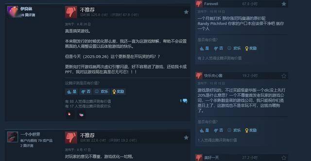 该作全球好评率为61%褒贬不一,国区好评率仅为37%多半差评。差评主要集中在优化差,首发一个月就打折背刺玩家。