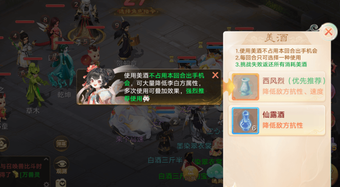 强烈建议与拥有"西风烈"物品的少侠组队挑战,该物品效果极佳可多次叠加使用,"西风烈"为稀有物品,不可售卖,可通过文采风流——博状元获得。