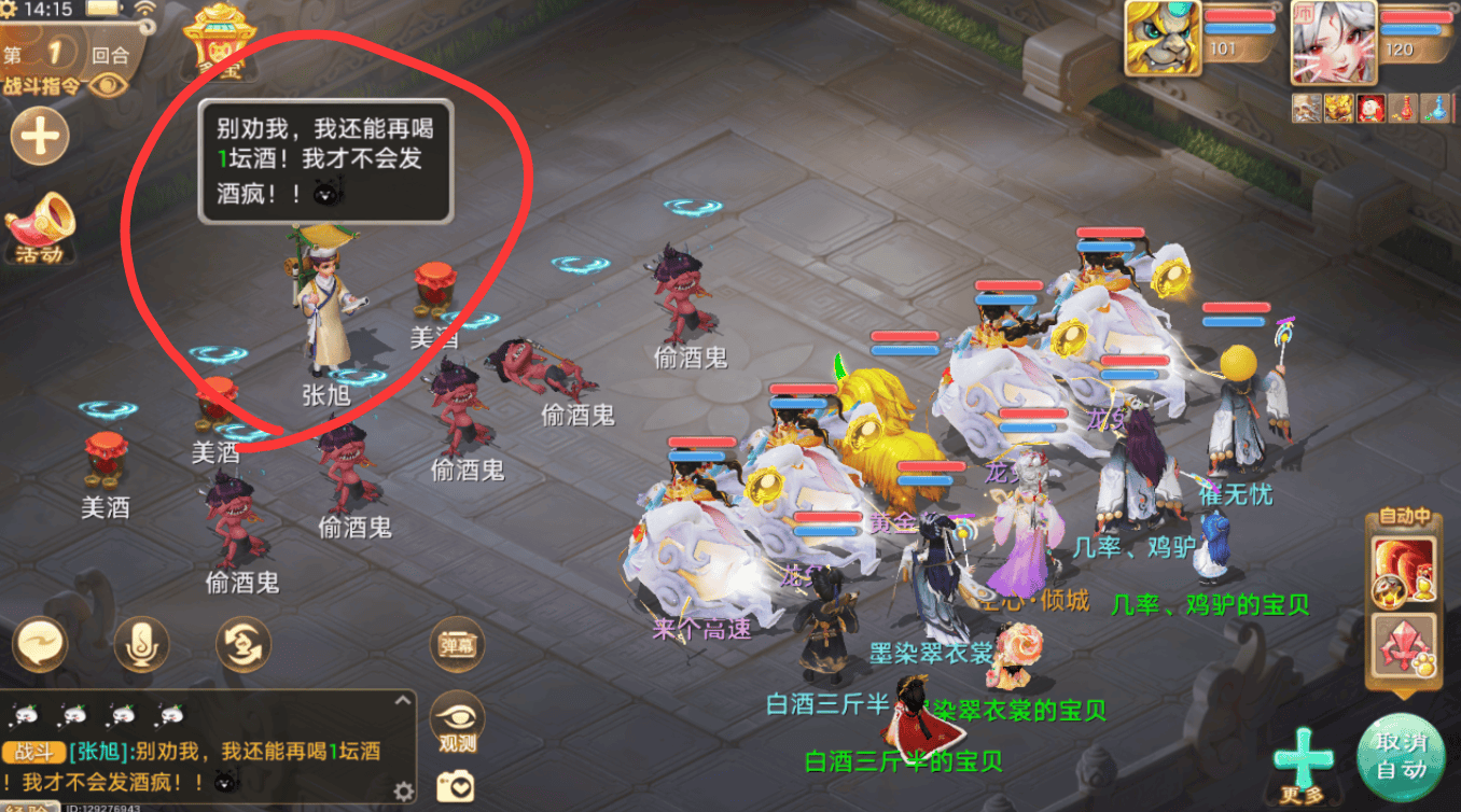 大话手游饮中八仙第二个玩法——侠客争锋,需要玩家3人及以上组队,挑战苏晋、焦遂、张旭三位唐代文化名人,可以使用美酒降低敌方属性,提高战斗胜率。