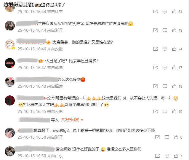 BLG官博下方的评论如下,不少粉丝怒斥:本以为游刃有余的胜利,没想到是连滚带爬的落败!输得太丑陋了,比去年还丑,到底还要突破多少下限,难怪这么多人骂你们!也有粉丝批评Knight和bin:一个大赛隐身,一个喜欢装!