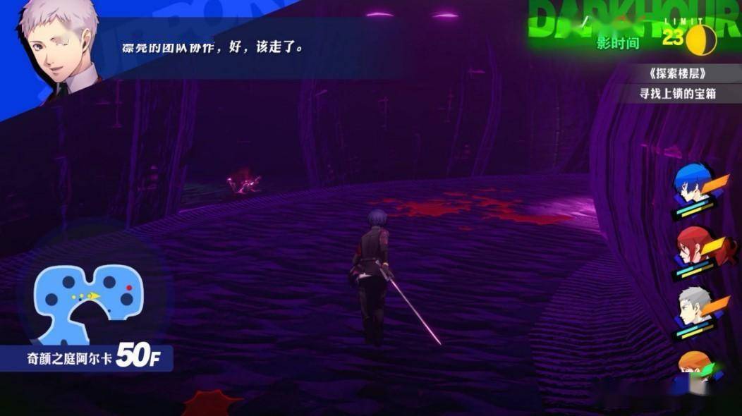 值得注意的一点是,在《P3R》中“猎杀者”的触发速度非常之快,如果你在一层中停留了超过两三分钟的时间,那么他便会在迷宫中出现,并以极快的速度开始向你接近——很多次,我只是低头点个外卖的工夫,就发现被猎杀者追到并触发了先置攻击,然后一招下去全队倒欠他几条命……