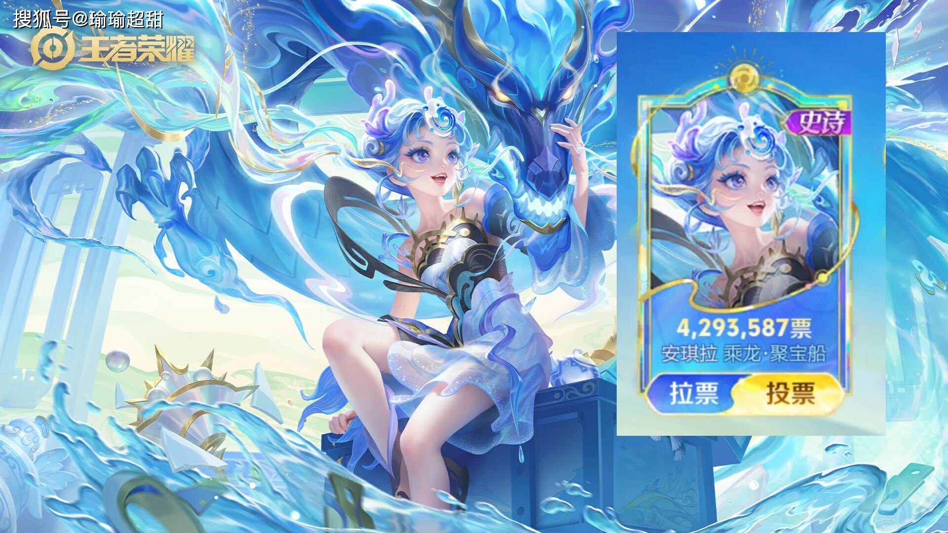 目前第3名的皮肤是安琪拉的聚宝船,这是龙年限定皮肤之一,虽然是史诗品质的皮肤,但技能特效真的非常高级,目前也是有429万票排到了第3位。