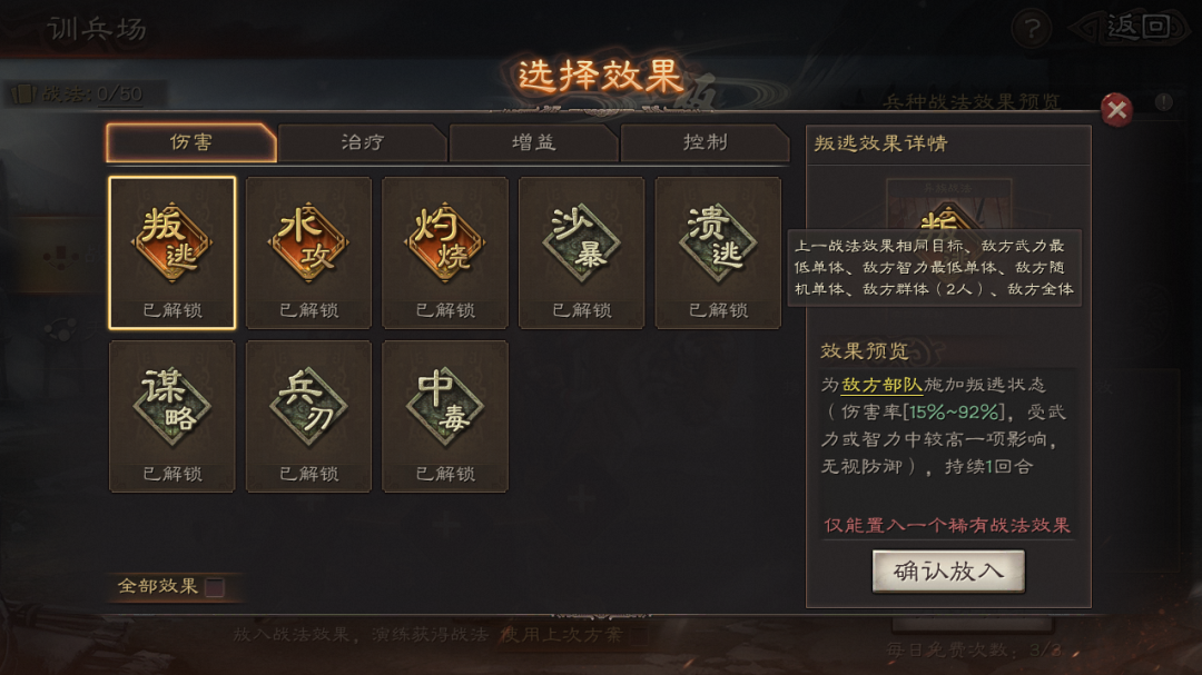而在此基础之上,三战还将游戏兵种的设计权利交给了玩家,推出了自定义战法模式。玩家可以完成势力任务,获取异族战法的养成素材,以此打造属于自己的战法。