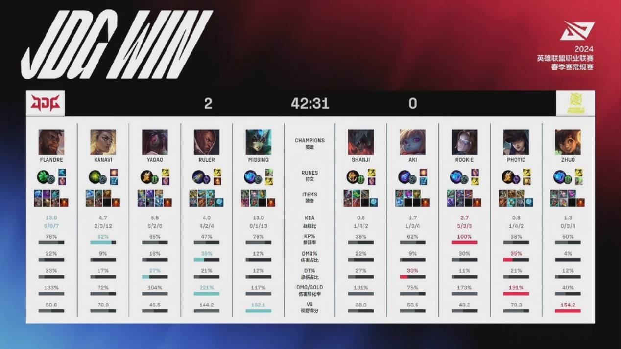JDG年前只有两场比赛,第一场取胜,但比赛内容没有那么精彩,因为观众对JDG战队的要求和预期都很高,所以都在找JDG发挥不好的点。
