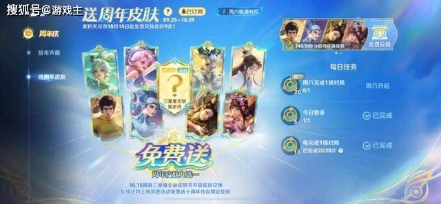 10月17日至10月29日,玩家只需要预约周年庆的前瞻直播,同时参与指定任务,即可必得10周年回城特效+明星语音礼包,还有机会抽到全皮肤的大奖。