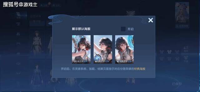主要是在衣橱内新增了显示经典海报的开关,在勾选开启后,玩家即便使用不同方案的穿搭,都可以在加载以及结算的页面中显示经典海报。