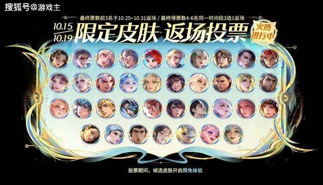 此次的规则,也是1至3名原价返场,4至6名则是3选1购买,此外,返场投票期间,对应的限定皮肤全部都可以限免体验。