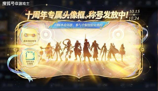 10月15日至10月24日,为期10天的时间,玩家可以参与英雄拾忆的活动,免费领取10周年限定称号+拾年流光头像框的奖励。