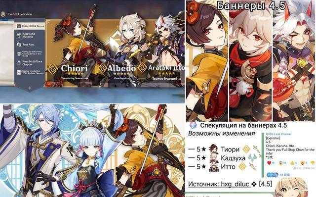 4.5卡池基本已经确定!除了新五星千织之外,复刻一斗,万叶和阿贝多!按照策划以往的套路来看,大概率会是千织阿贝多上半,下半万叶一斗!同时开三卡池,因为第三卡池为自选角色,所以并不固定,有内鬼透露会以出现在当前版本剧情中的角色为主,参考4.5是风花节,所以要进池的角色大概率会是优菈温迪这些蒙德角色!