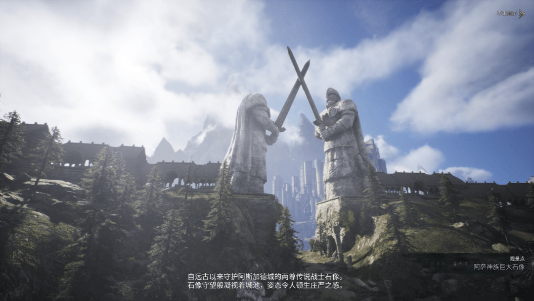 正因为《伊米尔传奇》对画面表现十分自信,游戏中特别设计了“观景点”系统,即站在特定的观景点,就会来上一小段表面上是介绍地标、实则“炫耀”美景的播片。