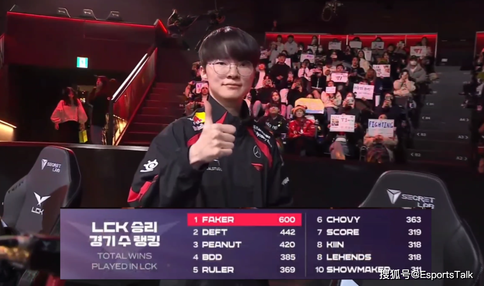 在赢下比赛后,几位队友都在鼓掌祝贺Faker,因为这一场结束后,Faker就解锁了他在LCK职业生涯的600胜,这不是小场哦,是大场系列赛的600胜,这个数据足足比第二名的deft多出了158场。