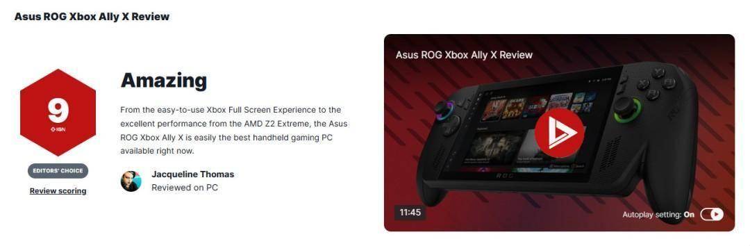 Xbox和华硕合作的高档掌机Xbox Ally X在今天正式推出,海外评测也在今日一并解禁。IGN给出9分好评。