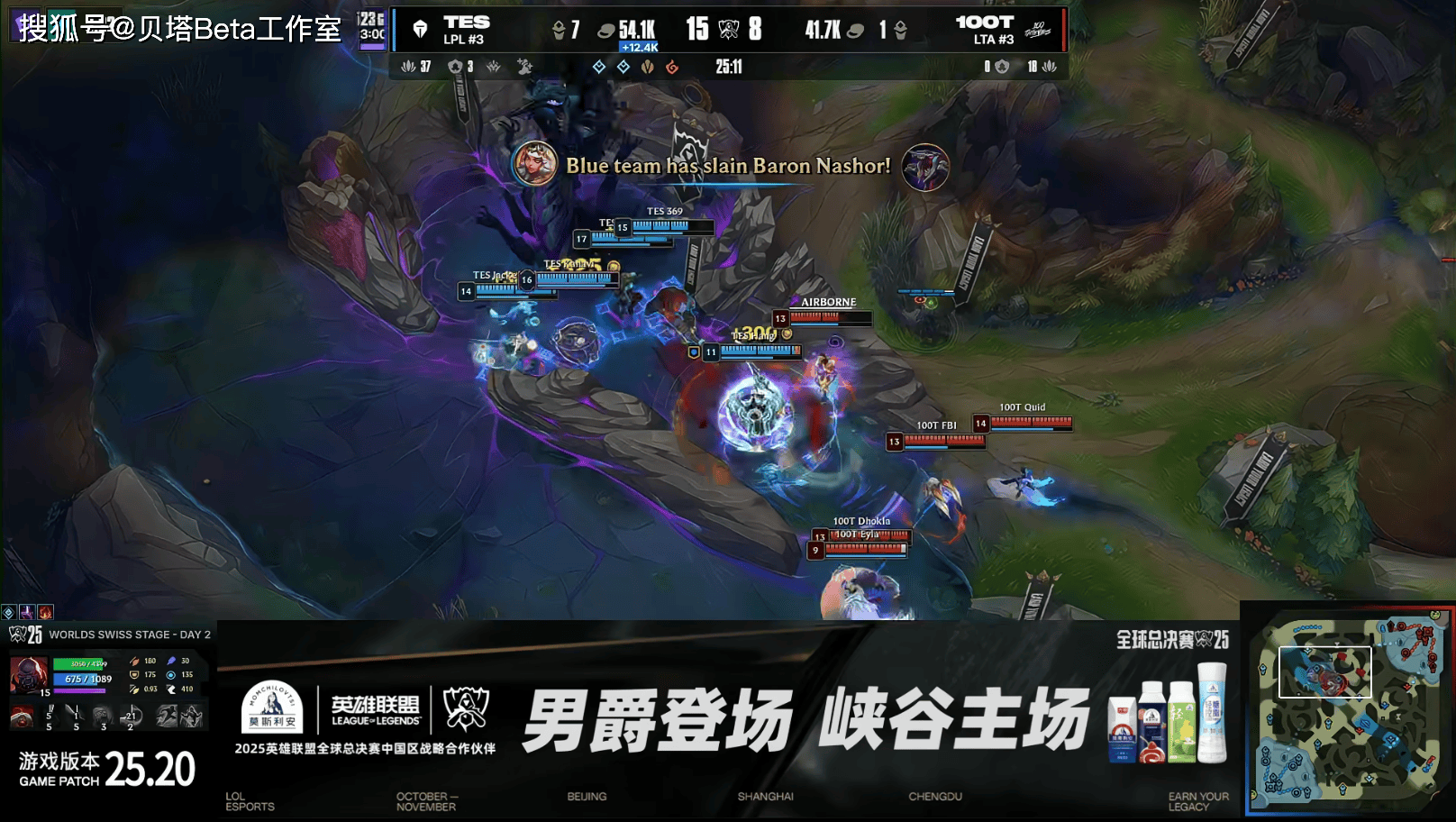 S15全球总决赛瑞士轮TES和100T的BO1,最终TES以1-0的战绩顺利击败100T,拿下2连胜!