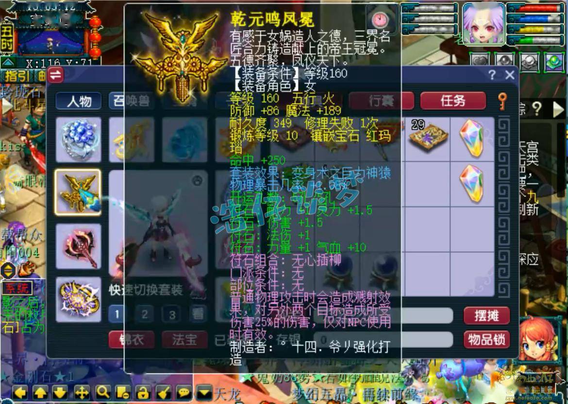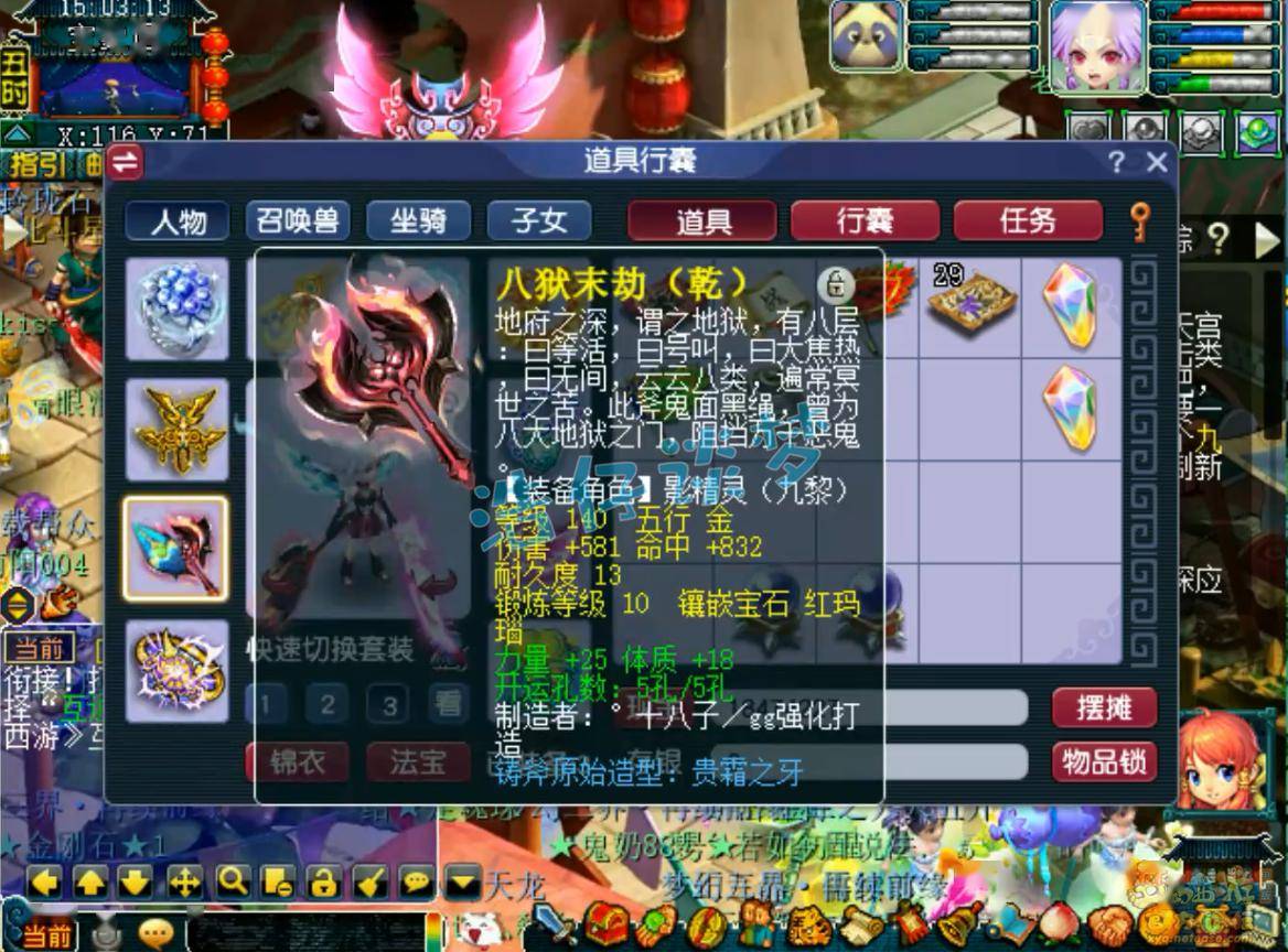 160级高伤武器,打了10锻红玛瑙,九黎城最大的优势就是影精灵可以双持武器,舍弃抗性追求极限输出!