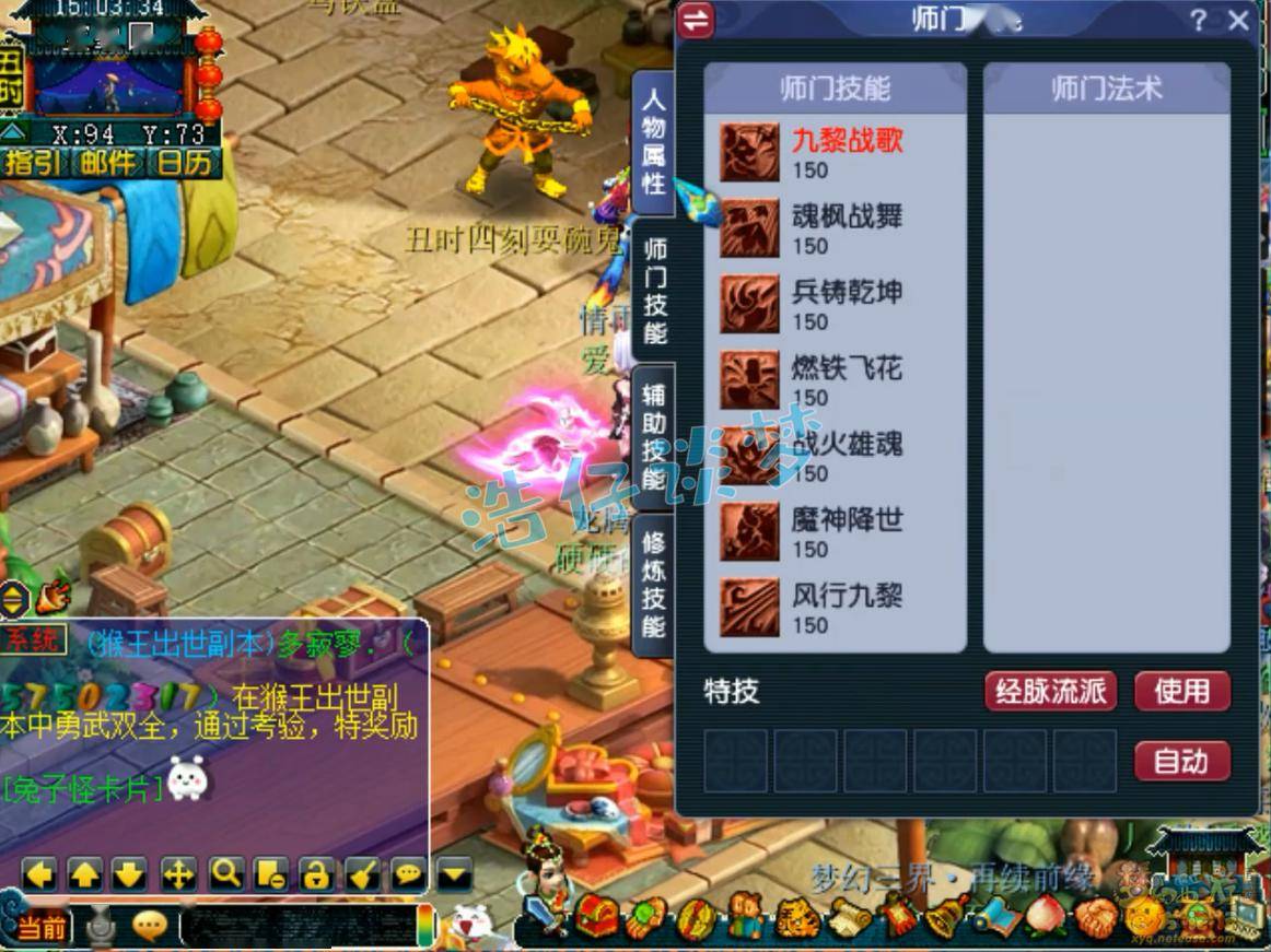 师门技能都是150级,看来她也是直接从129级升上来的,技能还没有点!