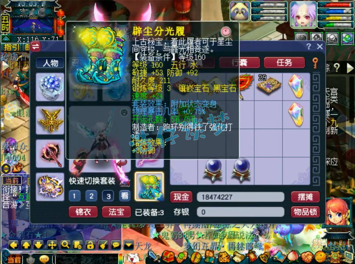 160级变身套鞋子,附加物理暴击几率+0.75%,仅打了3锻黑宝石!
