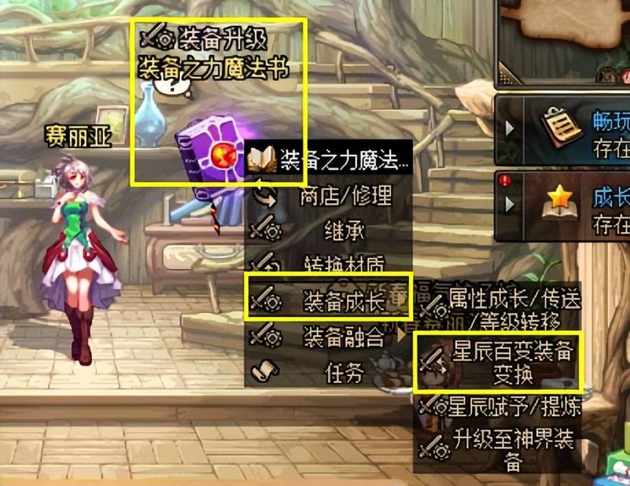 【璀璨的星辰百变装备原料】不能直接打开使用,需要在赛丽亚房间中的NPC【装备之力魔法书】处进行星辰百变装备变换操作。