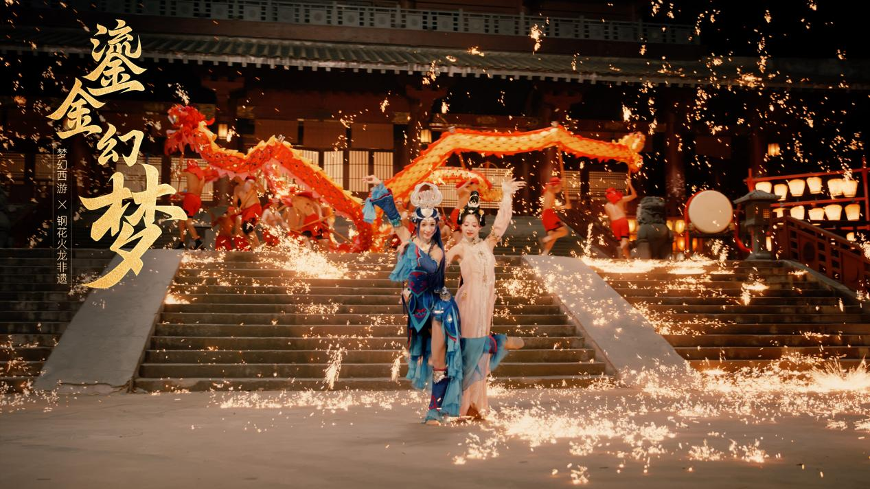 除了音乐盛宴外,官方还为玩家们准备了精彩纷呈的舞蹈节目。其中,“打铁花+空舞”这一力与美完美结合的表演形式,不仅传承了非遗文化,更为玩家们带来了一场视觉盛宴。舞者们在空中翩翩起舞,与璀璨的打铁花交相辉映,构成了一幅幅美轮美奂的画面。
