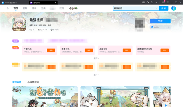 MuMu模拟器12已经完成了《最强祖师》游戏适配,玩家安装好最新版的MuMu模拟器12后,在模拟器应用中心内,搜索【最强祖师】就可以完成游戏安装并游玩了。