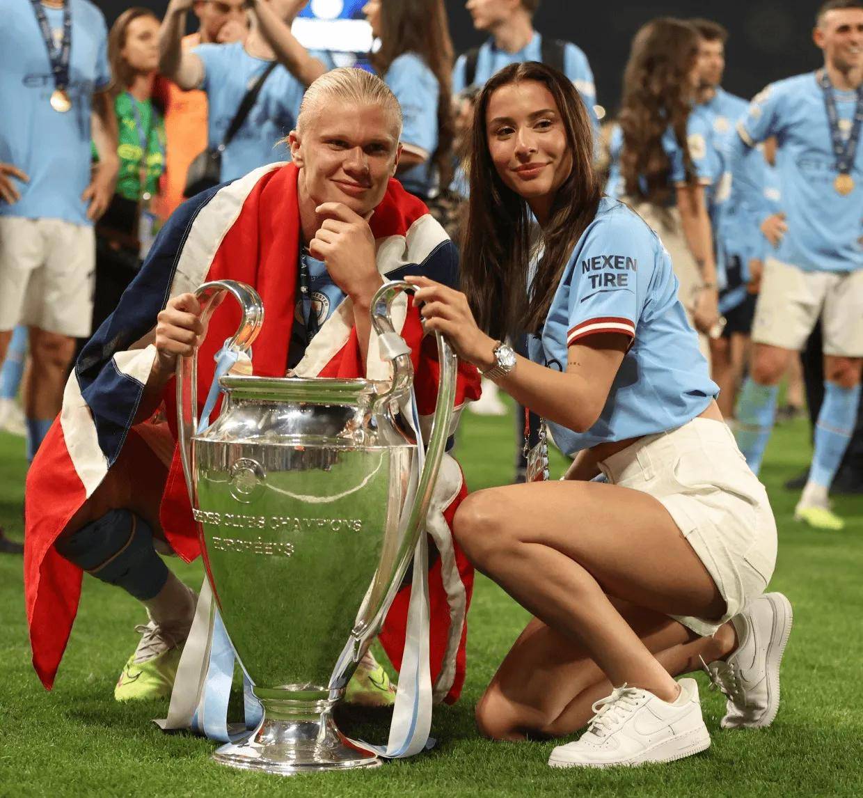 在2022年12月18日的一个欢腾之夜,曼彻斯特城队的年轻前锋哈兰德在卡塔尔世界杯上摘取最后一冠,荣膺本届世界杯最佳射手。当主持人宣布他的名字时,现场响起了雷鸣般的掌声。这位年仅22岁的挪威金童一跃成为赛场新星,他在本届世界杯打入5球,帮助挪威一路杀进八强。而令人难忘的是,就在颁奖现场,他最心爱的伊琳娜热情洋溢地为他加油呐喊,两人的感人身影也被世界媒体一一捕捉。