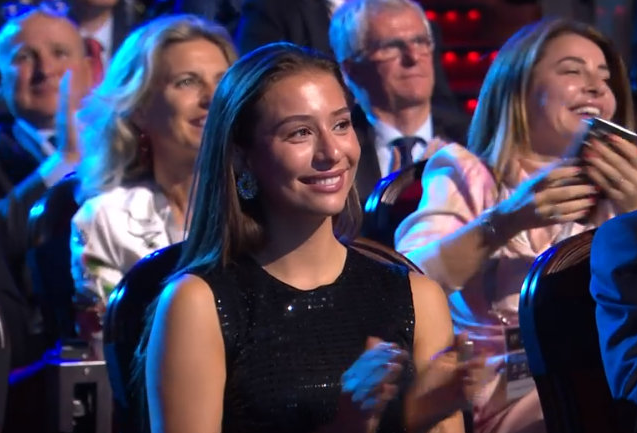 现场工作人员也没有错过这个温馨的镜头。他们特意将摄像头对准伊琳娜,让观众们见证了这对恋人在这个胜利时刻最真挚的爱意。镜头捕捉到,哈兰德一边高高举起奖杯,一边深情款款地望向自己的女友,两人视线在万千观众的见证下交汇、相融。